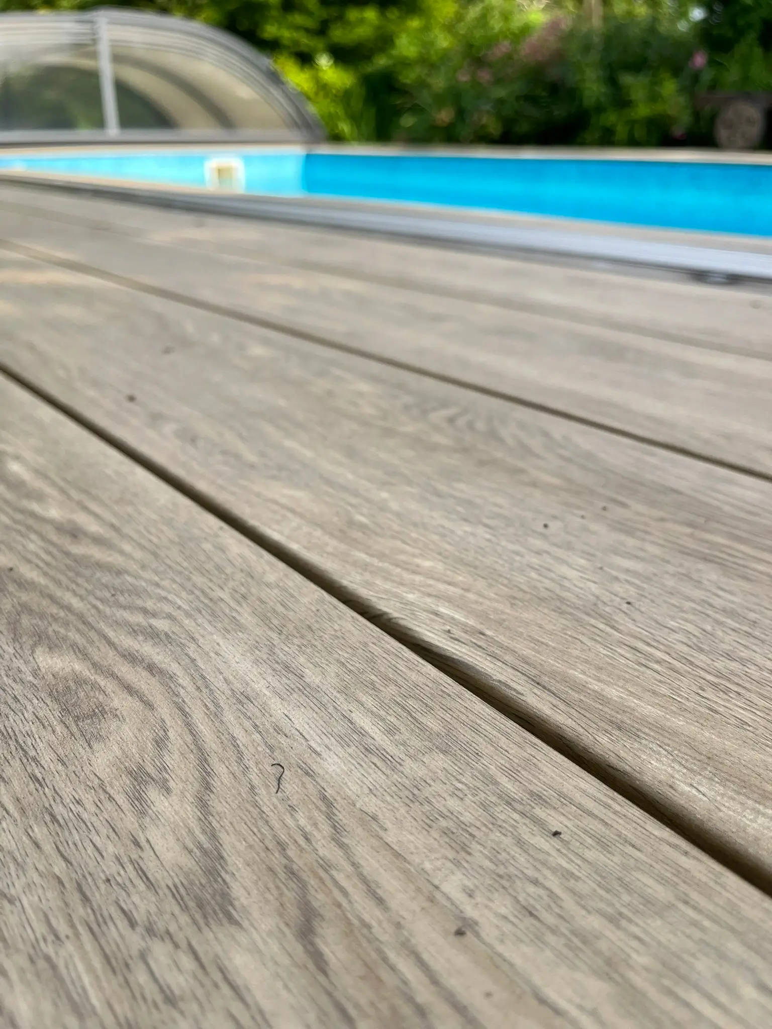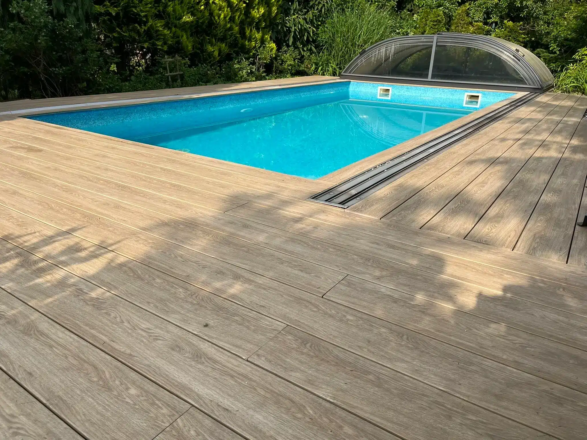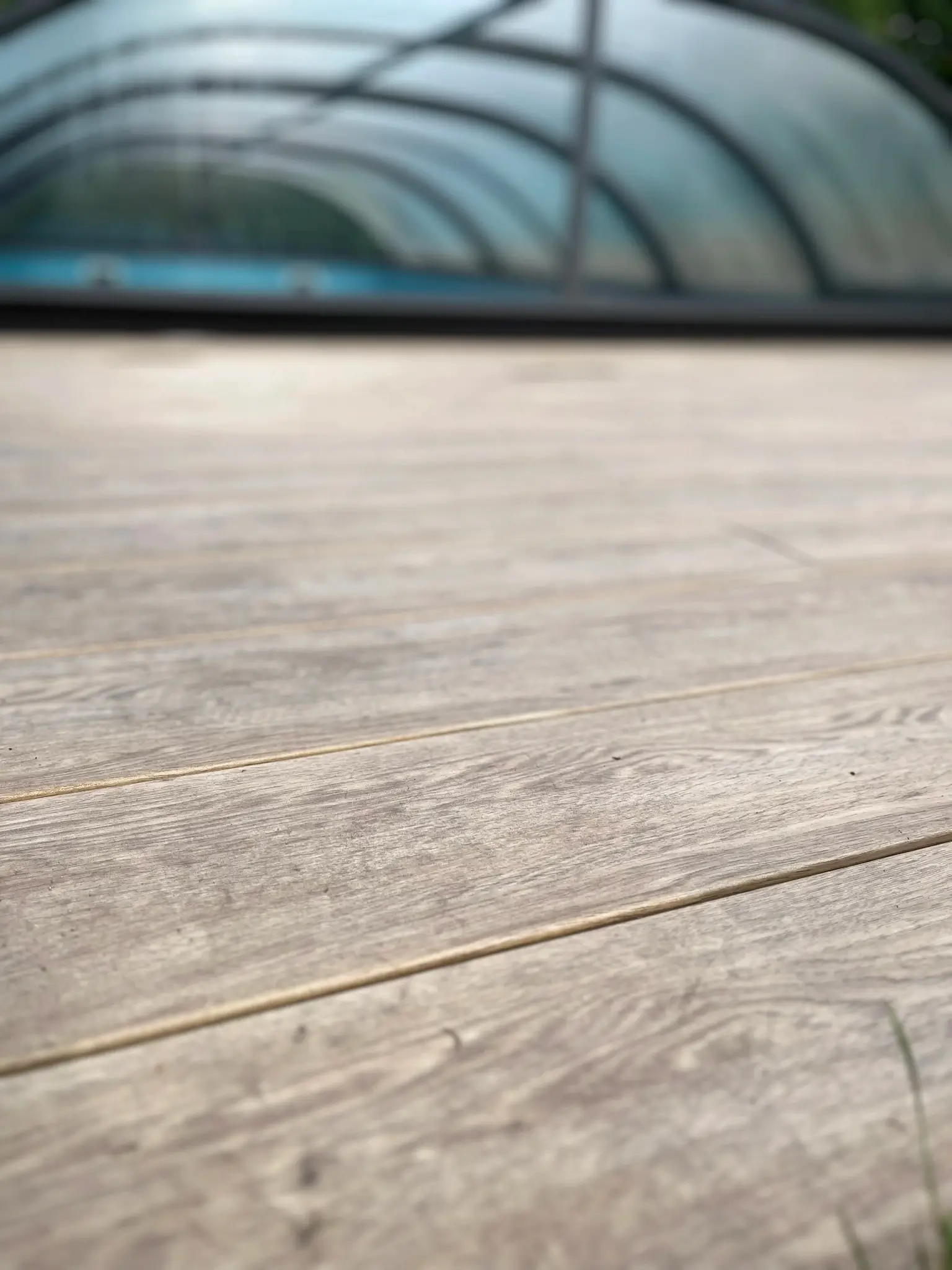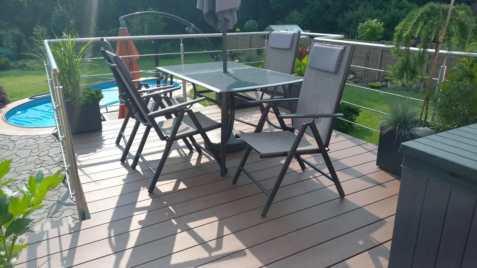 Materiál je odolný vůči povětrnostním vlivům, dřevokazným houbám a hmyzu a je vhodný k bazénům se slanou i chlorovanou vodou. Je bezúdržbový, nemusíte jej natírat nebo jinak ošetřovat. Prkna jsou protiskluzná a o proti dřevu se na povrchu netvoří třísky ani jiné defekty, což oceníte při chůzi bosou nohou. Terasa tak bude bezpečná pro Vás i Vaše děti.