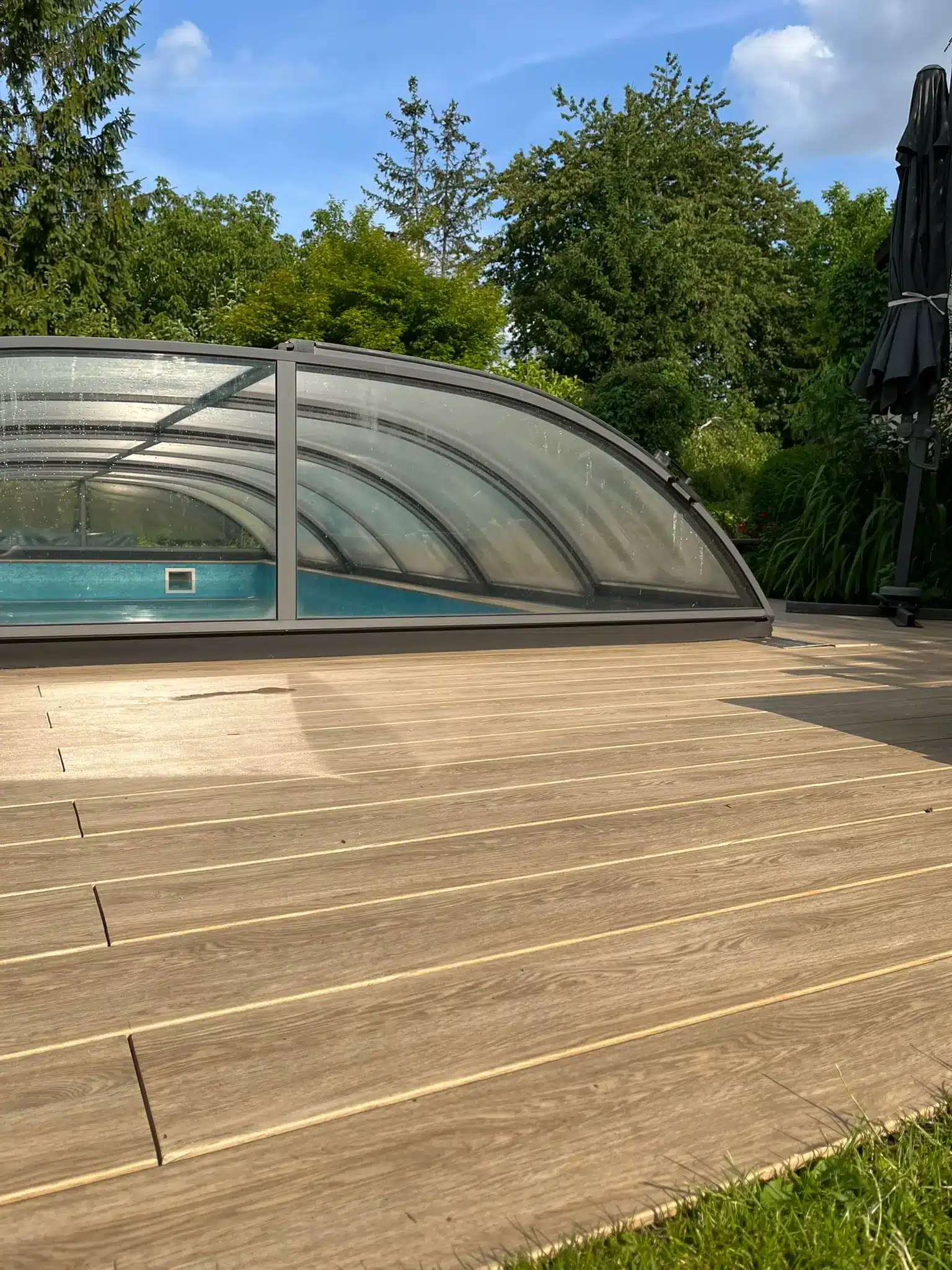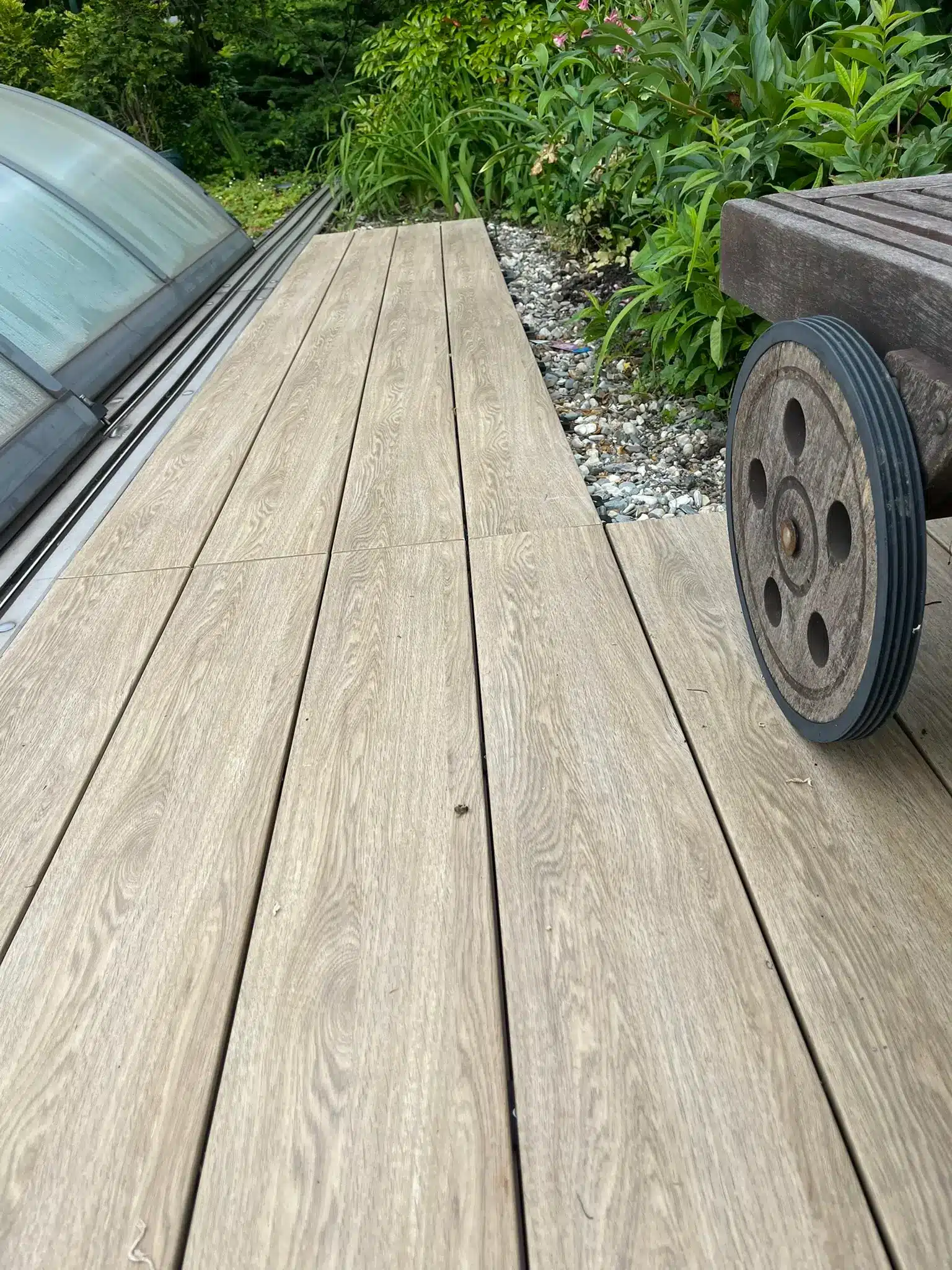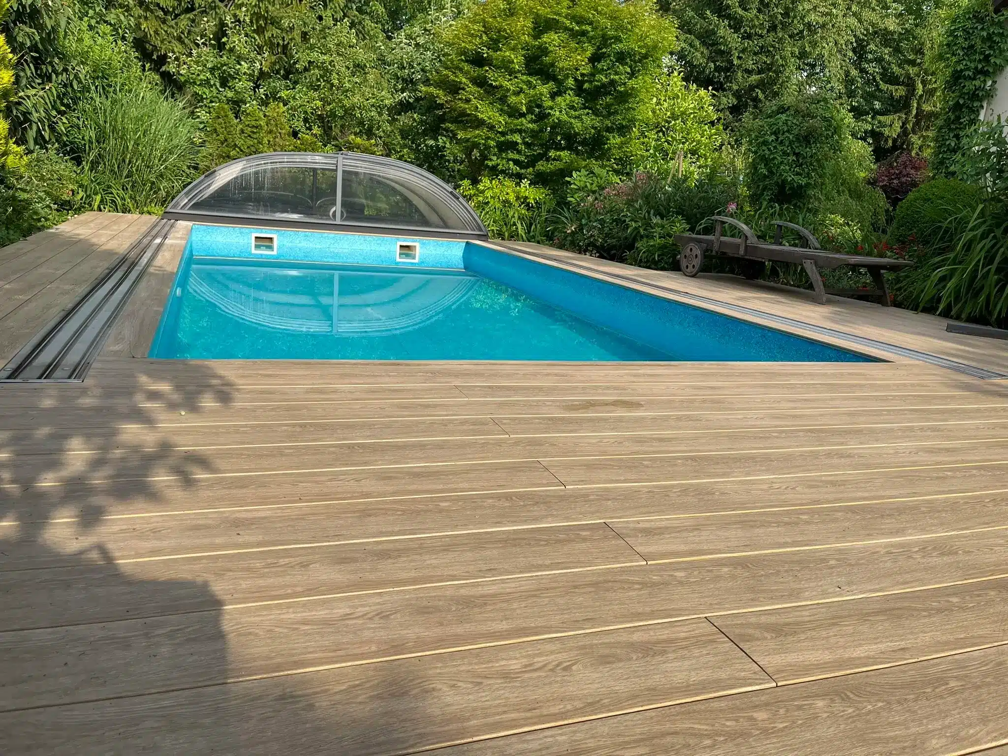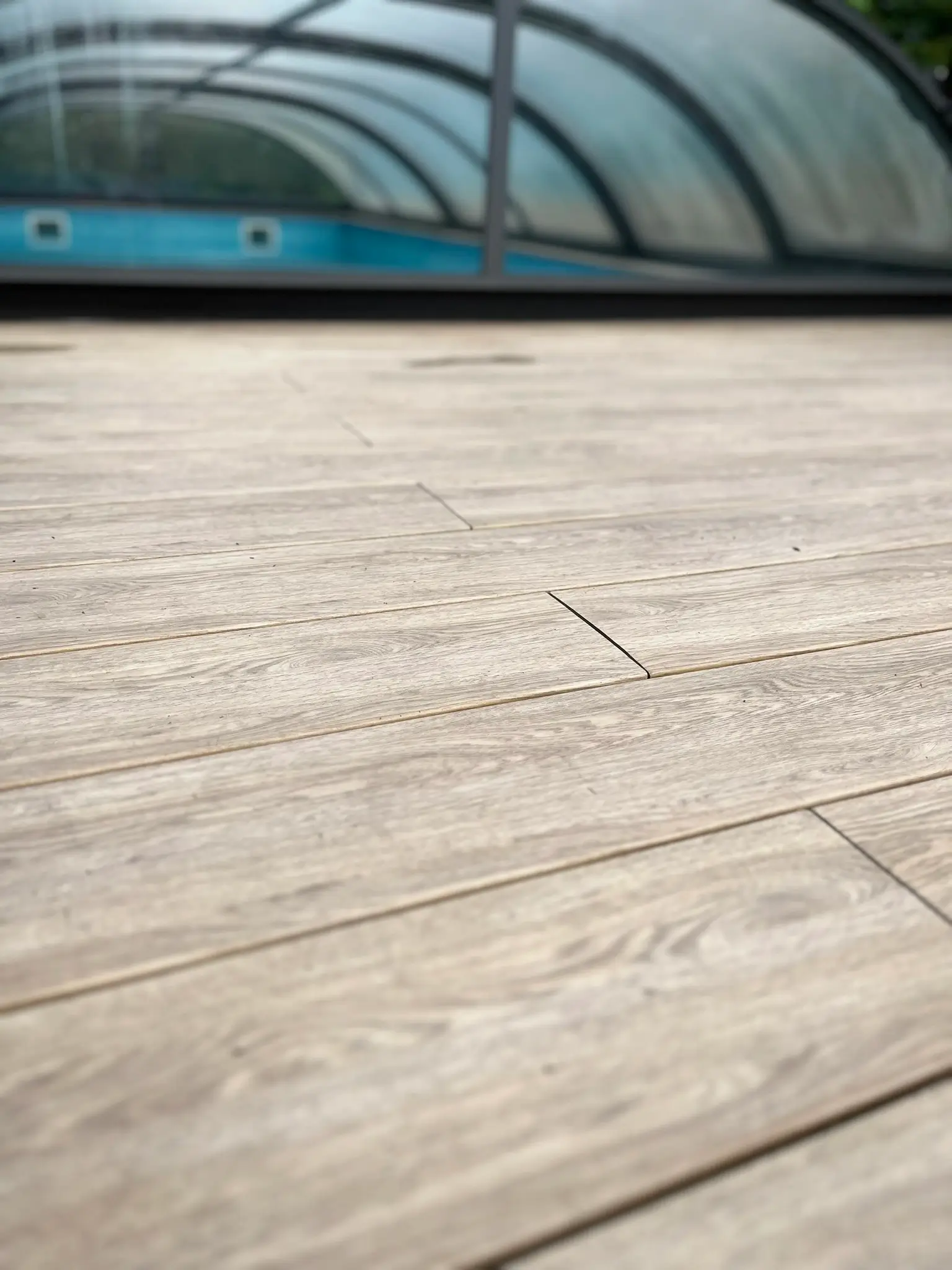 Materiál je odolný vůči povětrnostním vlivům, dřevokazným houbám a hmyzu a je vhodný k bazénům se slanou i chlorovanou vodou. Je bezúdržbový, nemusíte jej natírat nebo jinak ošetřovat. Prkna jsou protiskluzná a o proti dřevu se na povrchu netvoří třísky ani jiné defekty, což oceníte při chůzi bosou nohou. Terasa tak bude bezpečná pro Vás i Vaše děti.