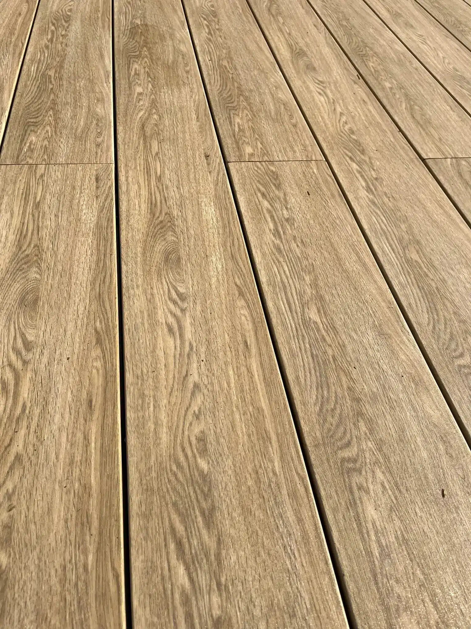 Terasové prkno v plném profilu od českého výrobce z kvalitního WPC materiálu (43% zdravotně nezávadné PVC, 17% zlepšující aditiva a max. 40% bukové dřevo) s vysokou odolností a dlouhodobou životností. Povrch prkna je potažen laminovací fólií RENOLIT GEOFOL FH, která mu dodává přirozený vzhled a jedinečnou stálobarevnost a odolnost vůči ušpinění.